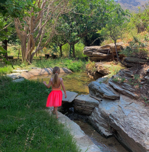 Τα καλοκαίρια η μικρότερη κόρη της παρουσιάστριας τα περνά στον επίγειο παράδεισο των γονιών της, το Onar, την ξενοδοχειακή μονάδα του μπαμπά της στα Άχλα της Άνδρου.