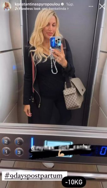Συγκεκριμένα, με ανάρτησή της ενημέρωσε πως επισκέπτεται κέντρο διατροφής, ακολουθώντας συγκεκριμένο πρόγραμμα, ενώ με το hashtag #9dayspostpartum -10kg ανέφερε πως έχασε 10 κιλά, τις πρώτες 9 μέρες μετά τον τοκετό.