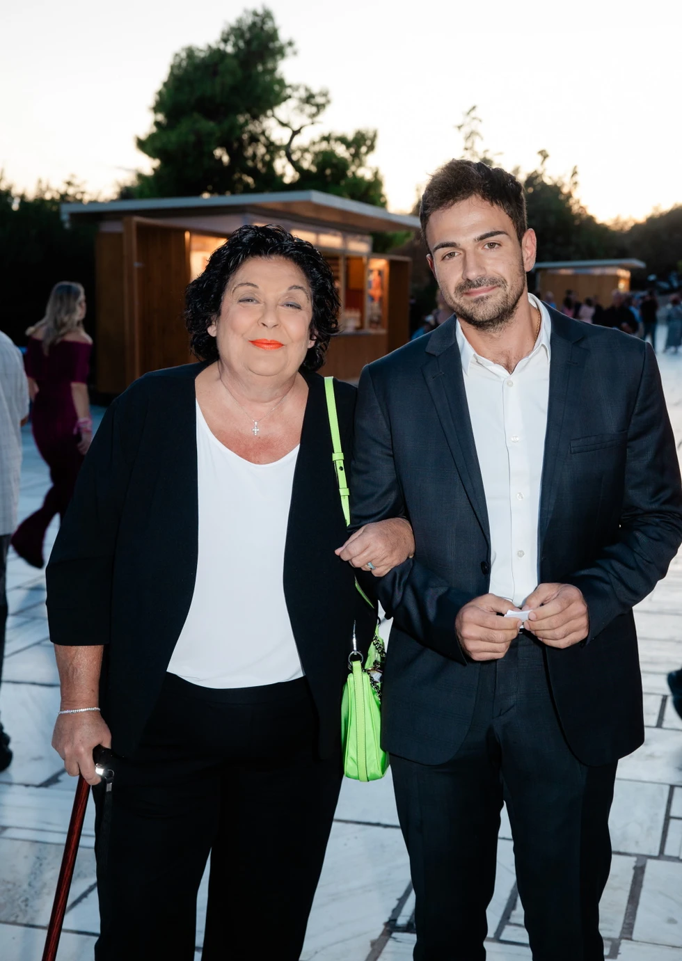 Ο γιος της Λιάνας Κανέλλη, ο Γαβριήλ Χρήστος, συνήθως αποφεύγει να προσελκύει τα φώτα της δημοσιότητας. Ωστόσο, σε αυτήν την ιδιαίτερη εκδήλωση στο Ηρώδειο, αφιερωμένη στη μνήμη της Μαριάννας Β. Βαρδινογιάννη, επέλεξε να σταθεί δίπλα στη μητέρα του και να ποζάρει χαμογελαστός, επισημαίνοντας τη στενή τους σχέση.