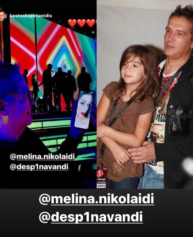 Στο κοινό, μαζί με την κόρη της Δέσποινας Βανδή βρισκόταν και ο νονός της, Κώστας Καπετανίδης, τον οποίο και η νεαρή κοπέλα απαθανάτισε να κοιτάζει μια φωτογραφία της.