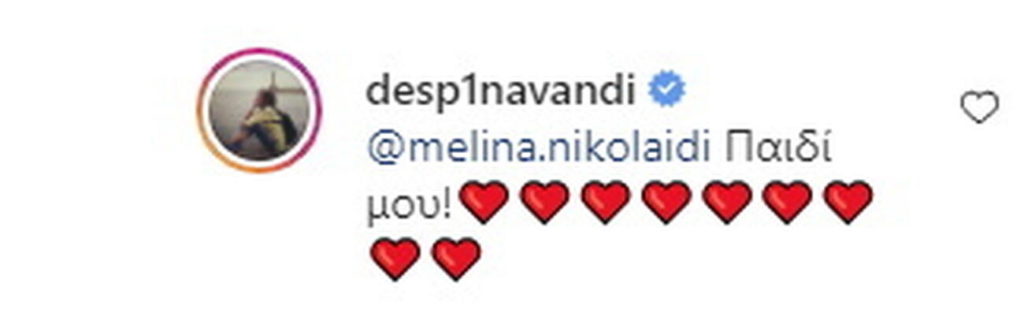 «Εεεε, εντάξει, θεά», έγραψε η κόρη της, Μελίνα Νικολαΐδη, με την Δέσποινα Βανδή να απαντάει: «Παιδί μου