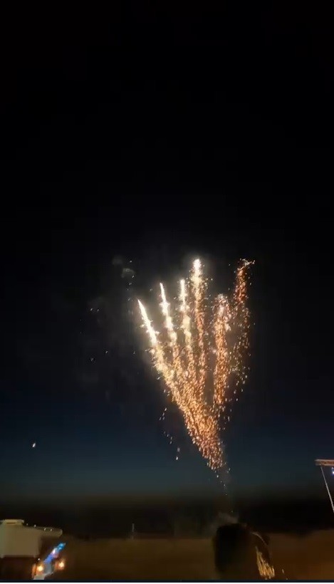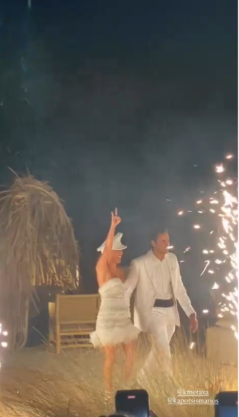 Εκεί έφτασε και το ζευγάρι – με άλλα ρούχα αυτή τη φορά- το οποίο έκανε την είσοδό του μέσα από πυροτεχνήματα.