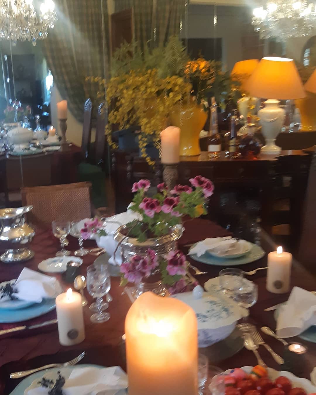 Εντυπωσιακά βάζα, κηροπήγια, κορνίζες με φωτογραφίες της Μαριτίνας, πορτατίφ και κεράκια συνθέτουν το αρχοντικό…