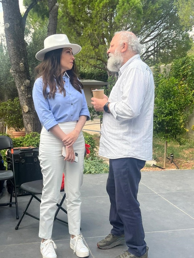 Μάλιστα, η Ιωάννα Παλιοσπύρου κατά τη διάρκεια της παραμονής της στα γυρίσματα της σειράς “Μετά τη φωτιά” συνομίλησε και με τον σκηνοθέτη Γρηγόρη Καραντινάκη.