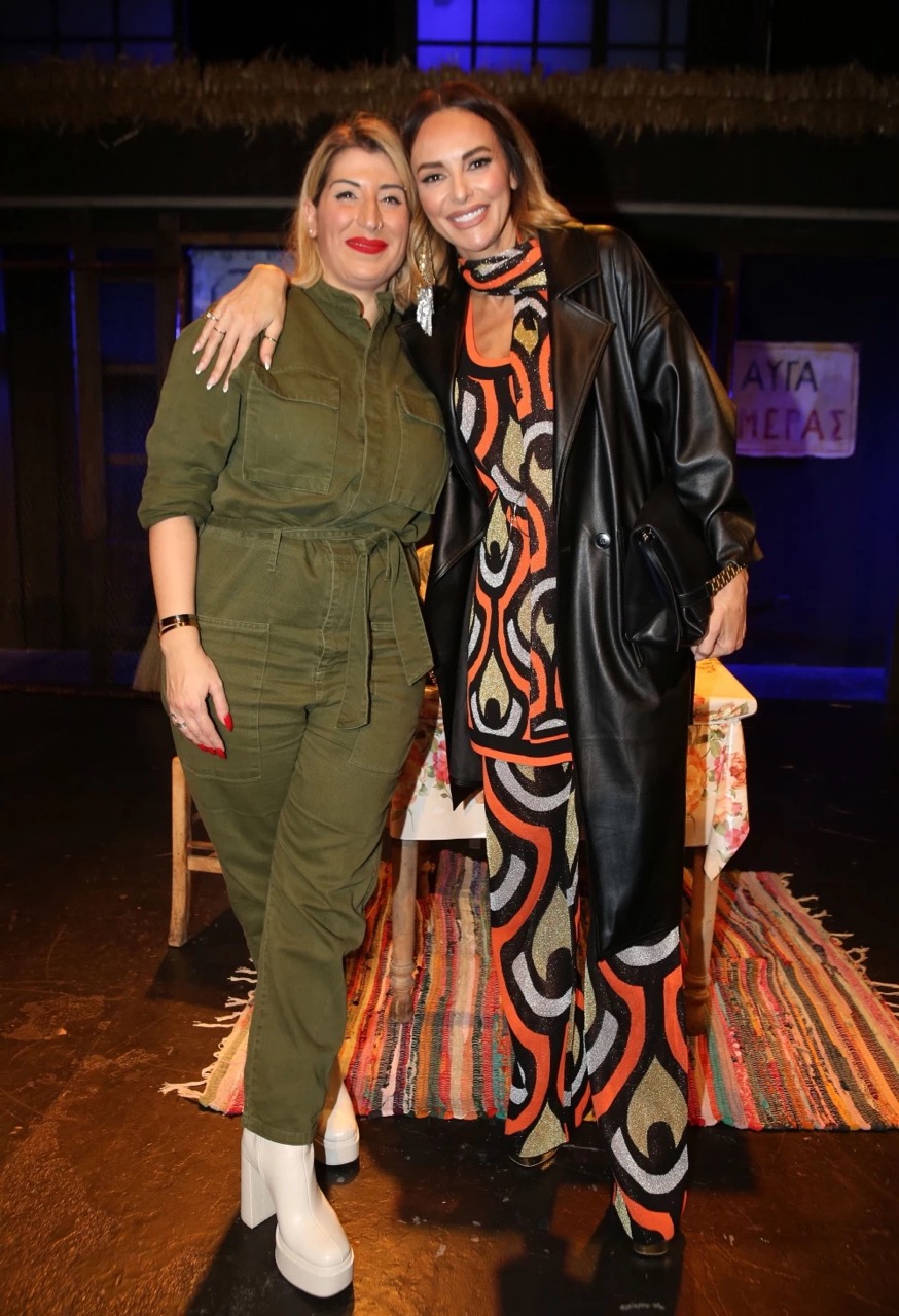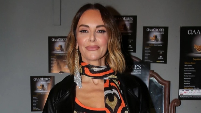 Η Μπέττυ Μαγγίρα εντυπωσίασε στην πρεμιέρα της παράστασης «Αλλόκοτες» στο θέατρο Altera Pars, επιλέγοντας ένα λαμπερό και στυλάτο σύνολο. Η παρουσιάστρια επέλεξε πλεκτό αστραφτερό σύνολο με ζακάρ σχέδια σε ύφος των ’60s, αποτελούμενο από μίνι φόρεμα και flared παντελόνι. Συνδύασε το σύνολο με λεπτό κασκόλ με ασορτί prints και πρόσθεσε ένα μαύρο πανωφόρι με εφέ δέρματος. Ολοκλήρωσε το look με εντυπωσιακά σκουλαρίκια.