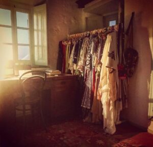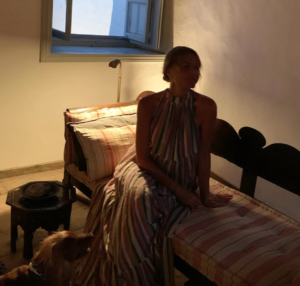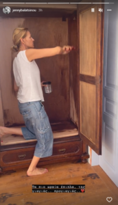 Η ίδια έχει δημιουργήσει έναν χώρο ιδιαίτερης αισθητικής με πολλά vintage κομμάτια, που έχουν ιδιαίτερη αξία για εκείνη. Όπως η ξύλινη ντουλάπα της γιαγιάς και της προγιαγιάς της, που αναπαλαίωσε μόνη της και πλέον βρίσκεται στο εξοχικό της.