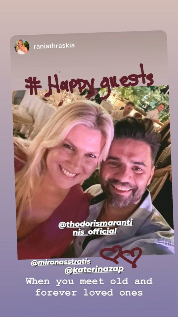 Ανάμεσα στους καλεσμένους ήταν και η Ράνια Θρασκιά, ο Θοδωρής Μαραντίνης και ο Παναγιώτης Χατζηδάκης.