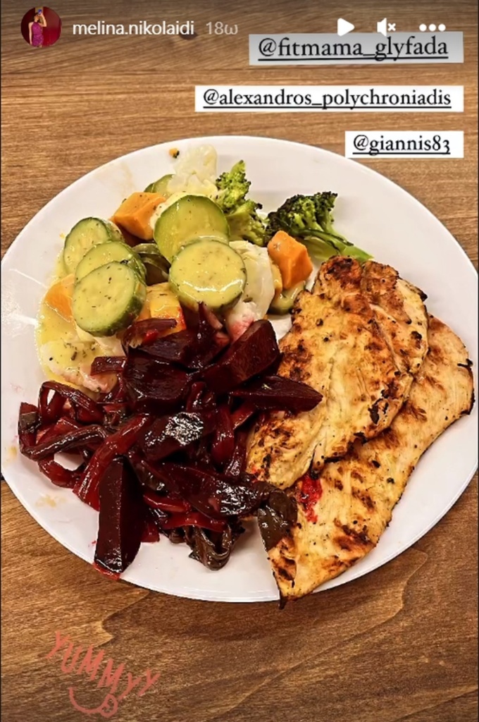 Όπως είναι εμφανές, η υγιεινή διατροφή είναι στο καθημερινό πρόγραμμα της Μελίνας όπως επίσης και η γυμναστική.