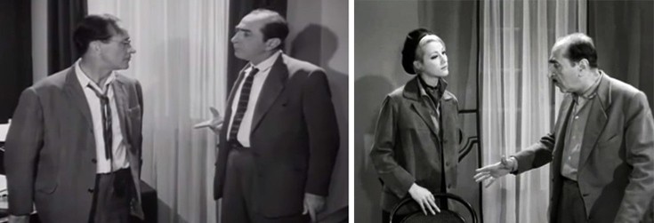 Όπως, για παράδειγμα, στην ταινία «Φωνάζει ο κλέφτης» (1965), όταν ως διοικητής του αστυνομικού τμήματος ανακρίνει τον κρατούμενο λογιστή…