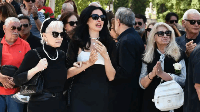 Η Έλενα Σαγάνα ξέσπασε σε λυγμούς στην κηδεία του Νίκου Γαλανού αποχαιρετώντας για πάντα τον σύντροφό της.