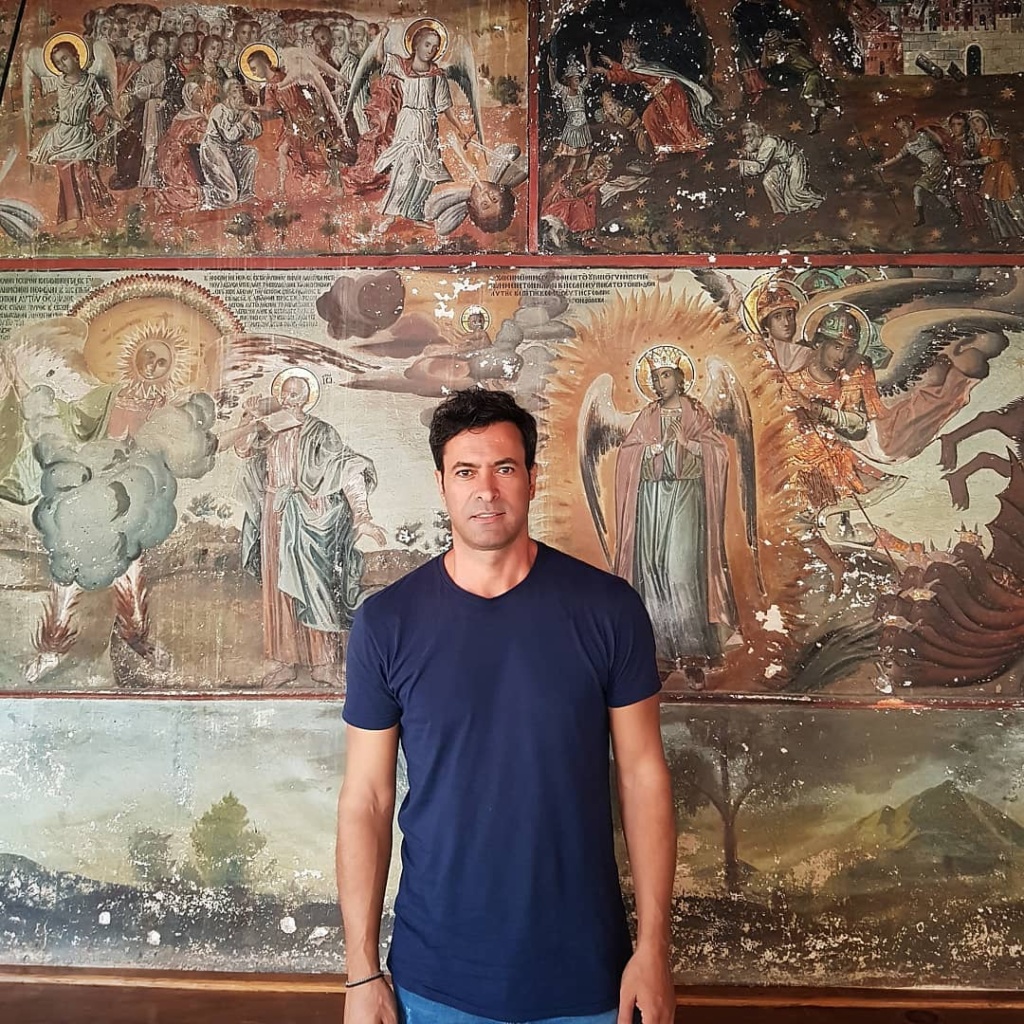 Η πρώτη μου επαφή με το Άγιο Όρος ήταν στα 23 μου όταν πήγα με δύο φίλους που στη συνέχεια έγιναν ιερομόναχοι. Γνωριστήκαμε όταν κάναμε αγιογραφία και επειδή ήξεραν πολύ κόσμο, κανονίσαμε ένα ταξίδι και άργησα να πάω, γιατί εμένα από την πλευρά του πατέρα μου είχαμε έναν θείο, ο οποίος ήταν μοναχός στο Άγιο Όρος, είχε το κελί του. Είχαμε πάρα πολλούς ιερείς στην οικογένεια. Ο τελευταίος ιερέας ήταν ο προπάππους μου και εκεί πάμε προς τα πίσω που είχαμε και έναν Δεσπότη τον προπροπάππου μου που ήταν φίλος με τον Άγιο Νεκτάριο».