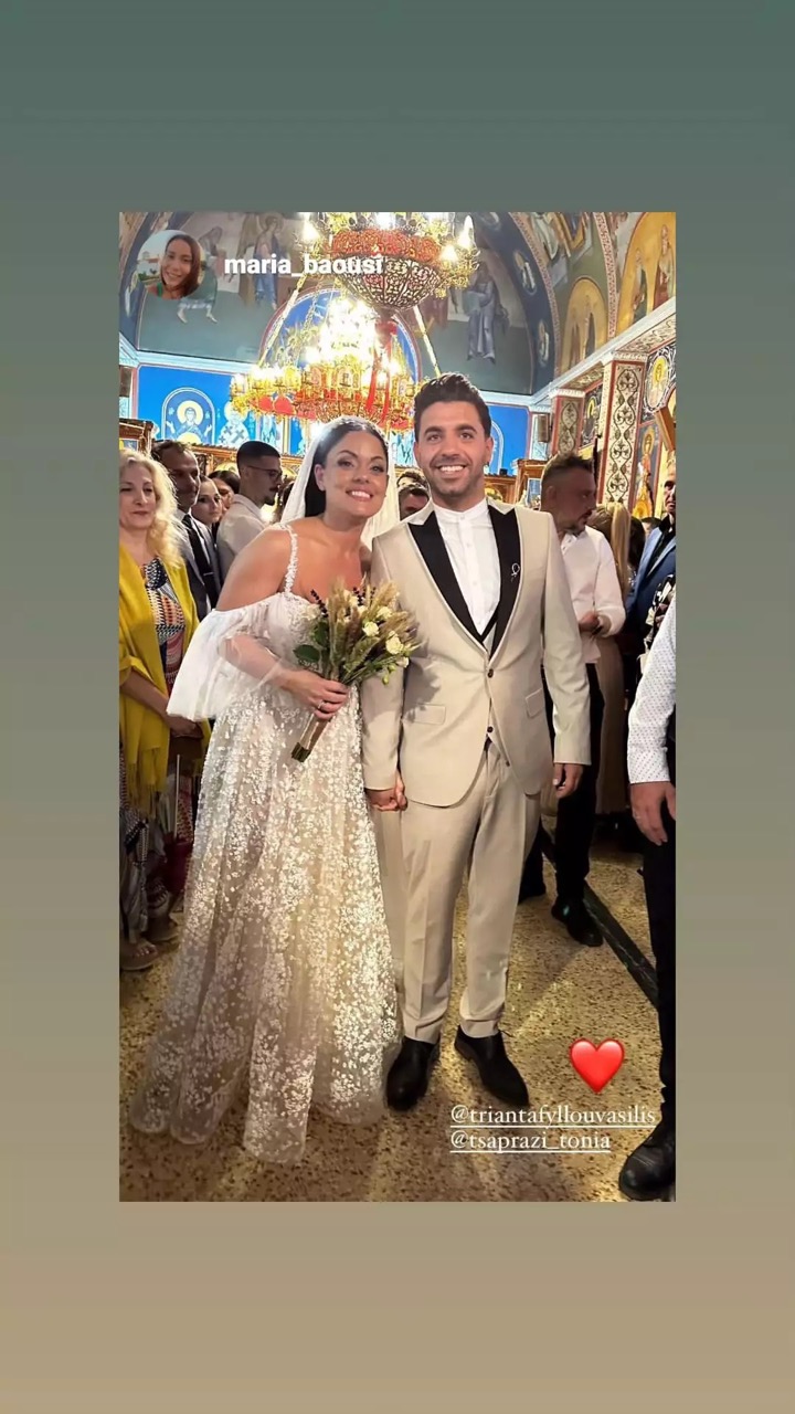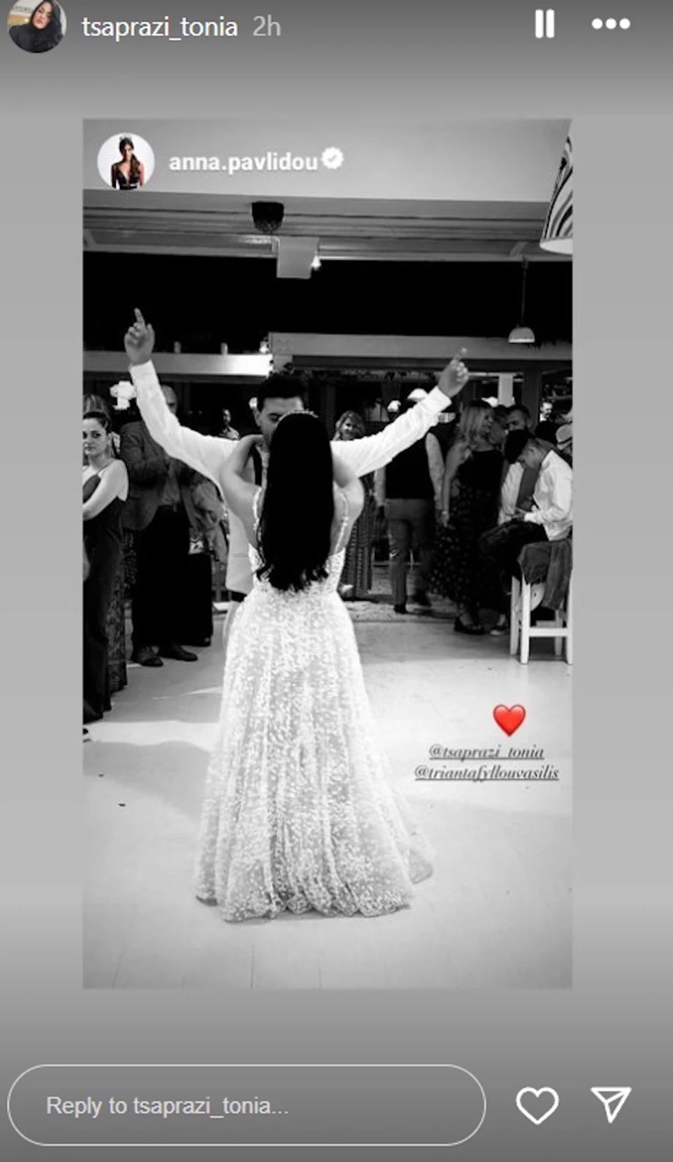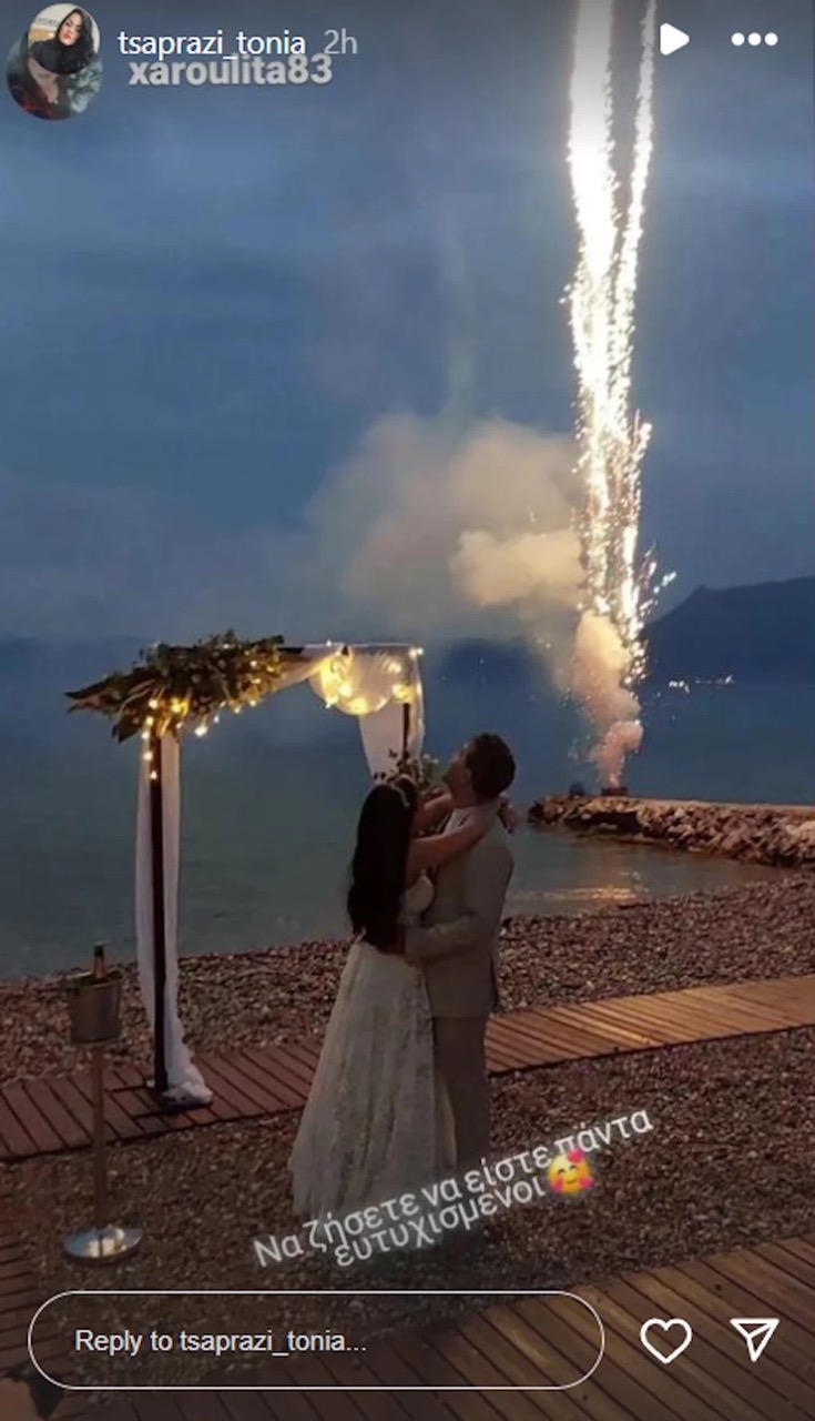 Η διακόσμηση της δεξίωσης ήταν λιτή αλλά κομψή, ενώ το γλέντι κράτησε μέχρι τις πρώτες πρωινές ώρες. Η νύφη, Τόνια Τσαπράζη, δεν δίστασε να ανέβει στα τραπέζια και να χορέψει με τους καλεσμένους, προσθέτοντας μια δόση αυθορμητισμού και χαράς στη βραδιά.