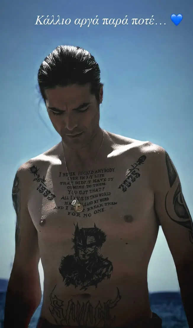 «Κάλλιο αργά παρά ποτέ…», έγραψε ο Άρης Μουγκοπέτρος ως λεζάντα στην ανάρτησή του στο Instagram, αποκαλύπτοντας ότι έκανε το πρώτο του μπάνιο στη θάλασσα, ενώ παράλληλα μας έδειξε τα πολλά τατουάζ που κοσμούν το κορμί του.