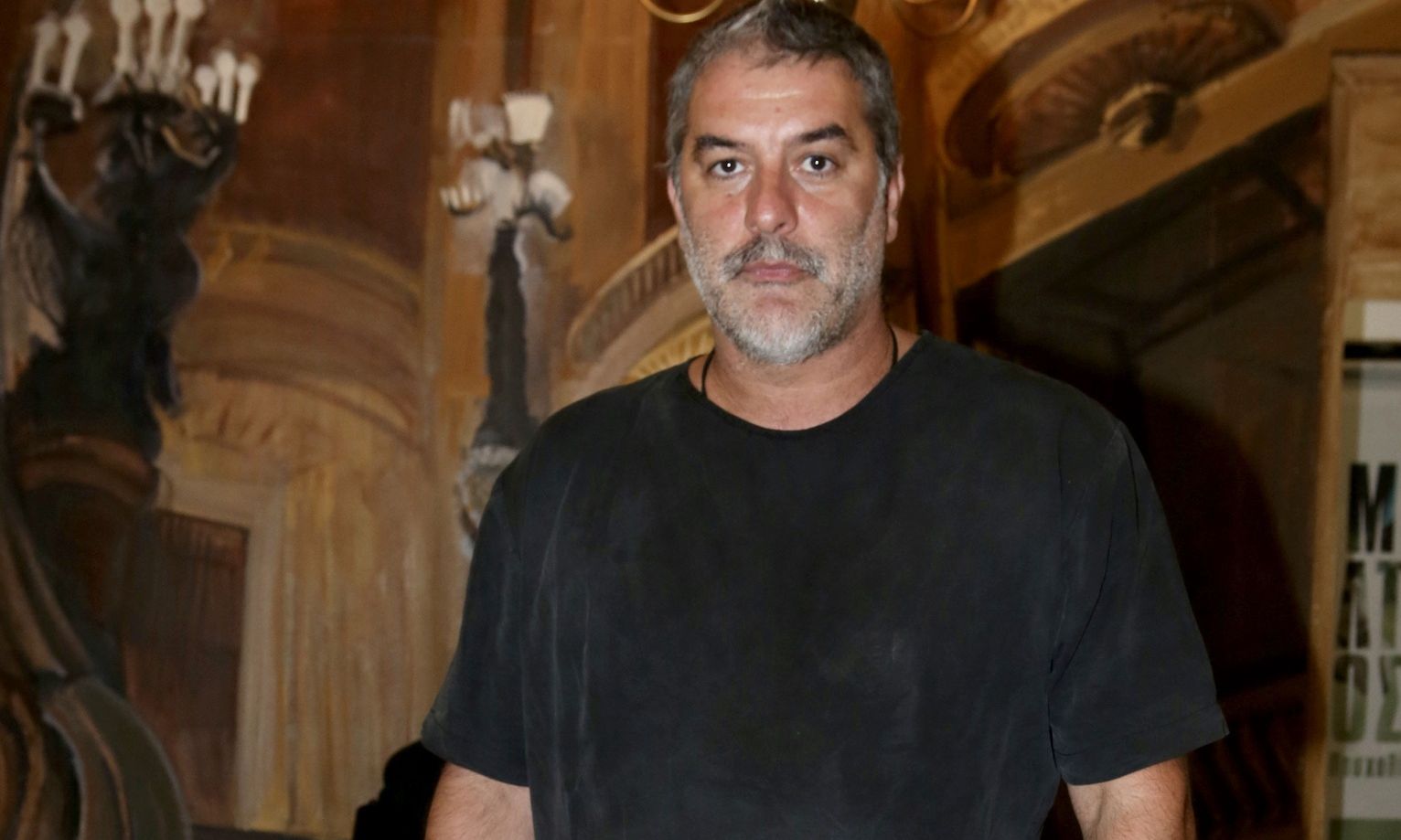 Φορώντας μαύρα ρούχα, όπως πάντα, ο ηθοποιός και σκηνοθέτης πόζαρε δίπλα στη Δέσποινα Βανδή και η διαφορά στα κιλά ήταν ολοφάνερη.