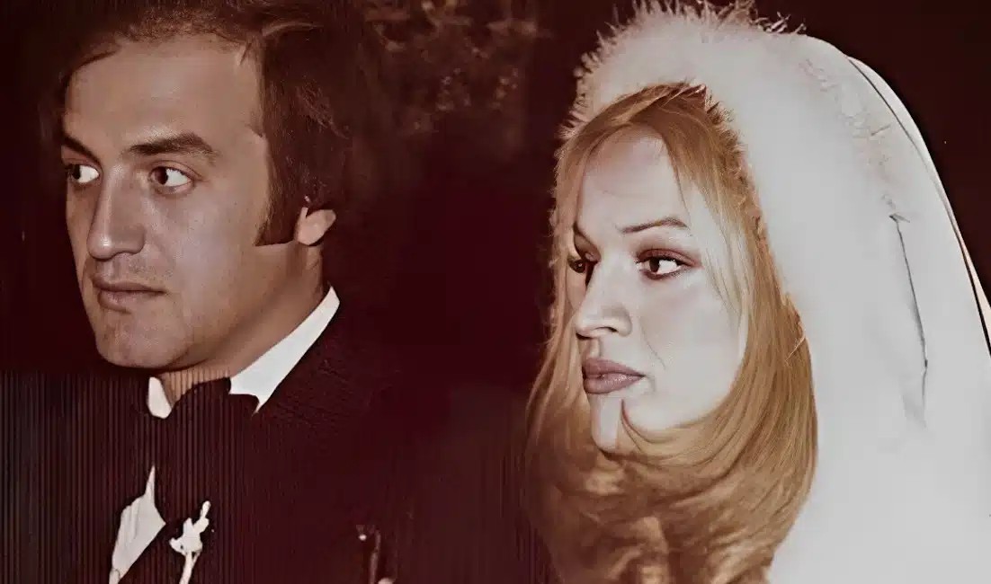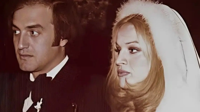 Η Μέμα Σταθοπούλου την ημέρα του γάμου της το 1975,με τον σύζυγό της, επιχειρηματία Δημήτρη Μαρούση.