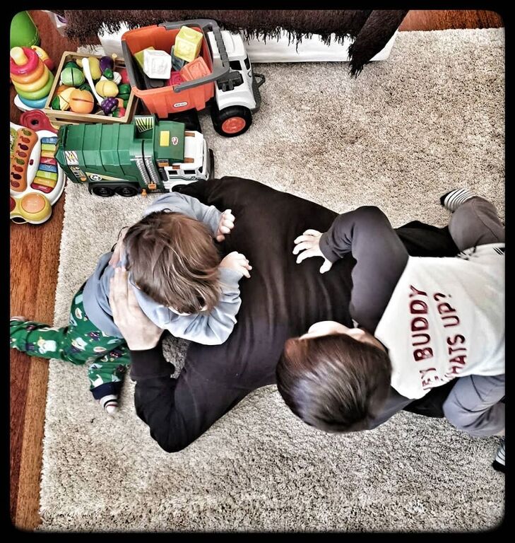 Ο ίδιος δημοσίευσε μια υπέροχη φωτογραφία των γιων του, που τους δείχνει να παίζουν επάνω στην πλάτη του.
