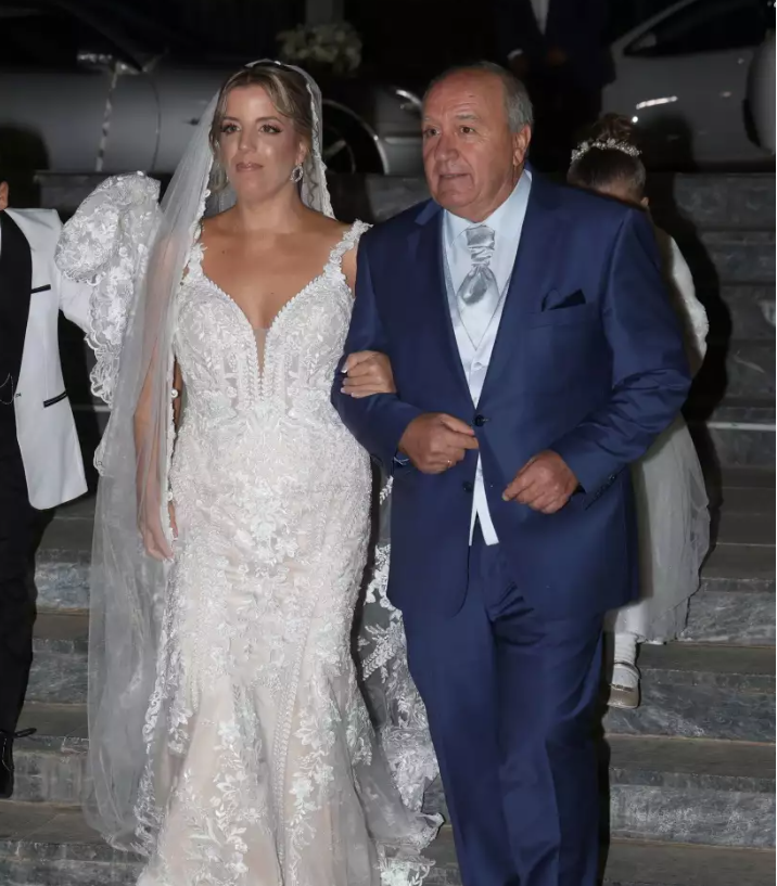 Η νύφη έφτασε στην εκκλησία συνοδευόμενη από τον πατέρα της και τα παρανυφάκια της και όπως θα δεις και στις φωτογραφίες έλαμπε από χαρά μέσα στο λευκό εντυπωσιακό νυφικό της.