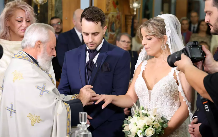 Τα δύο μυστήρια έγιναν back to back. Πρώτα έγινε ο θρησκευτικός τους γάμος με το ζευγάρι να ενώνει και επίσημα τις ζωές του. Ο γαμπρός καθυστέρησε αρκετά να φτάσει στην εκκλησία -η τελετή είχε οριστεί για τις 7- και δεν πρόλαβε να έρθει και στα 10 λεπτά έφτασε και η νύφη!