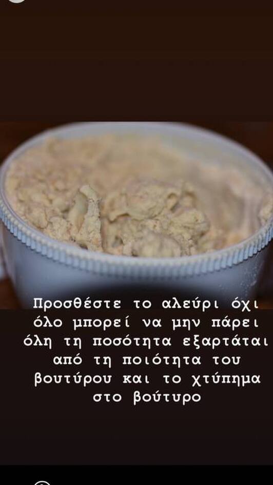 Προσθέτουμε το αλεύρι ( η ποσότητα εξαρτάται από την ποιότητα του βουτύρου και το χτύπημα).
