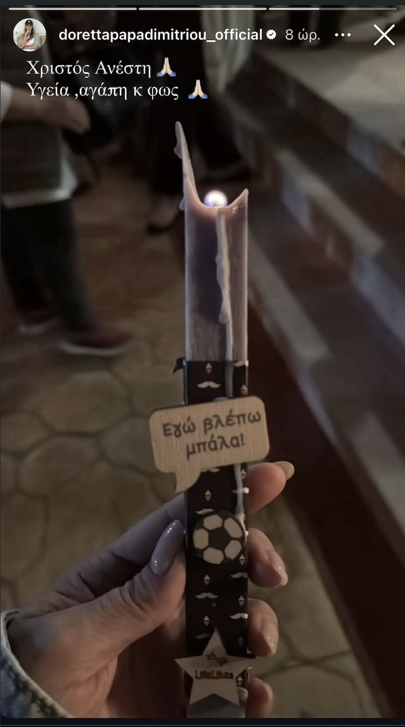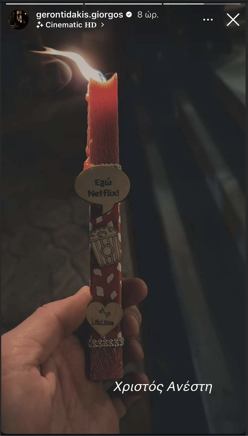 Η Ντορέττα Παπαδημητρίου ανάρτησε φωτογραφία από την εκκλησία, κρατώντας τη λαμπάδα της, η οποία έγραφε «εγώ βλέπω μπάλα». Λίγο αργότερα, ο Γιώργος Γεροντιδάκης δημοσίευσε επίσης εικόνα από το ίδιο σημείο, με μήνυμα που έγραφε «Κι εγώ Netflix».