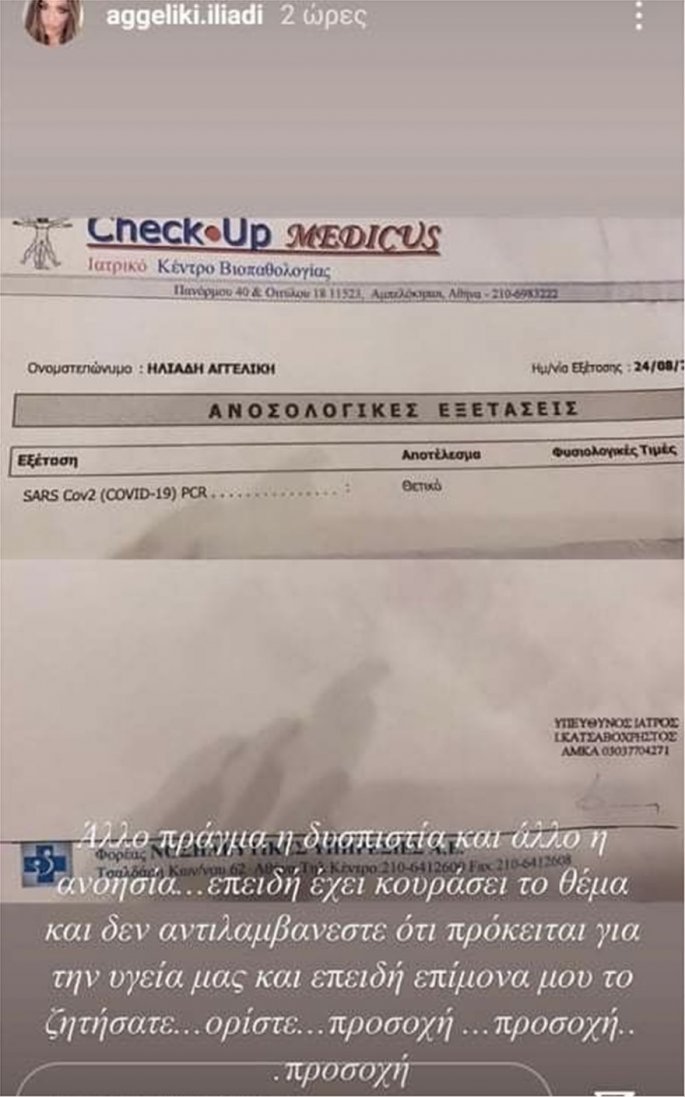Θετική στον κορωνοϊό διαγνώστηκε και η Αγγελική Ηλιάδη τον περασμένο Σεπτέμβριο. Την αποκάλυψη την έκανε η ίδια η τραγουδίστρια μέσα από τα Instagram Stories της.