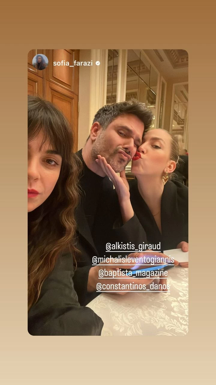 Πολλά ήταν τα stories από τη βραδιά, που ανάρτησαν στα social media οι καλεσμένοι, όπως το τρυφερό φιλί μεταξύ Μιχάλη Λεβεντογιάννη και Άλκηστις Ζιρό, που ανέβασε η Σοφία Φαραζή, στον προσωπικό της λογαριασμό στο Ιnstafgram.