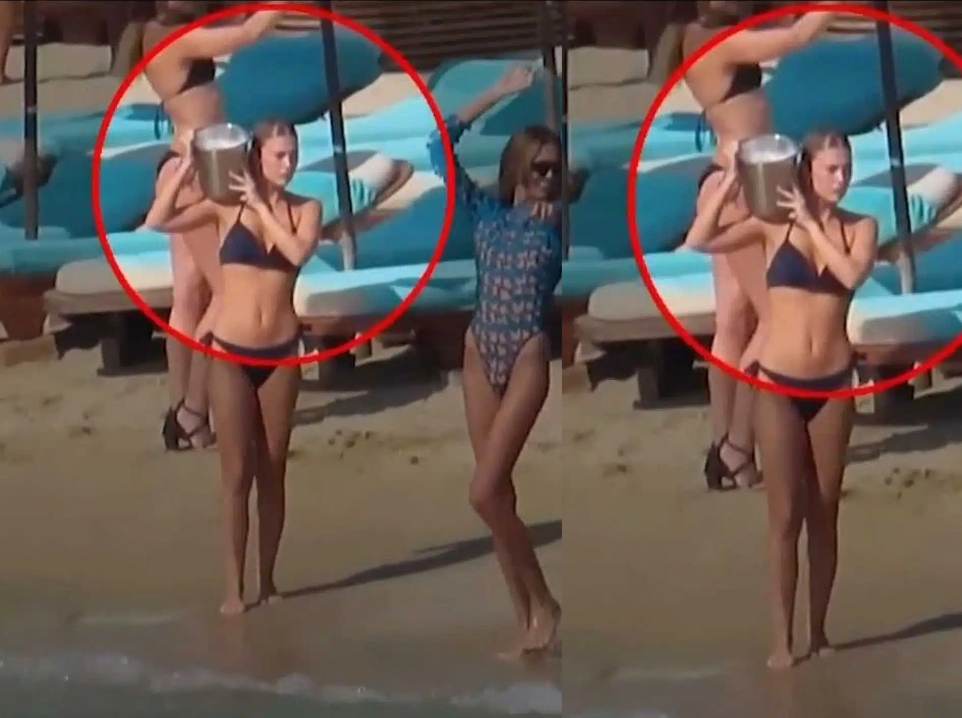 Η εντυπωσιακή ηθοποιός εμφανίστηκε στο Nammos στην Ψαρού, φορώντας μαύρο μαγιό και εκτελώντας χρέη σερβιτόρας, σε σκηνές που τράβηξαν αμέσως την προσοχή των παπαράτσι.