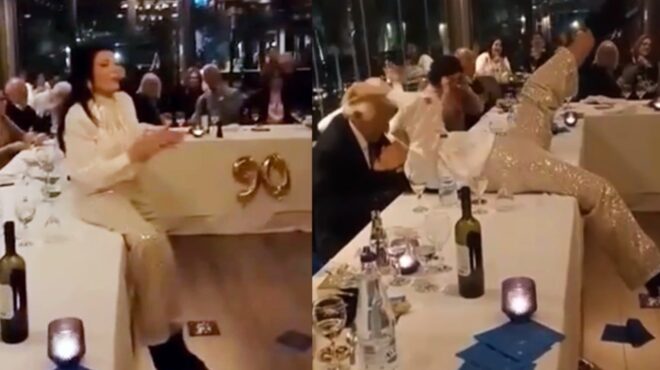 Τα εδέσματα ήταν εκλεκτά κ η σαμπάνια έρεε άφθονη, ενώ η Ζωζώ έδωσε ρεσιτάλ χορού και τραγουδιού.