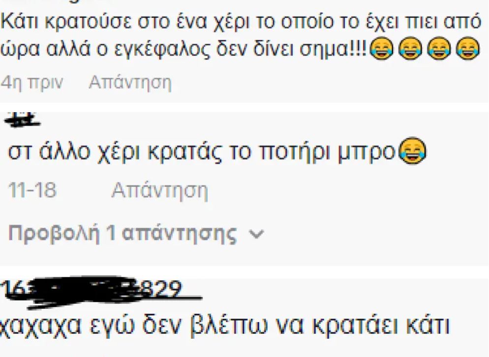 «Τι κρατάει ακριβώς στο χέρι;» γράφουν στο βίντεο. «Στο άλλο χέρι κρατάς το ποτήρι» πρόσθεσε ένας άλλος. Ορισμένοι χρήστες της πλατφόρμας άνοιξαν συζήτηση σχετικά με το αν κρατάει κάτι, που δεν φαίνεται στην κάμερα. Οι περισσότεροι, ωστόσο, κατέληξαν στο ότι ο ίδιος απλά είχε ξεχαστεί και νόμιζε πως κρατούσε το ποτήρι του.