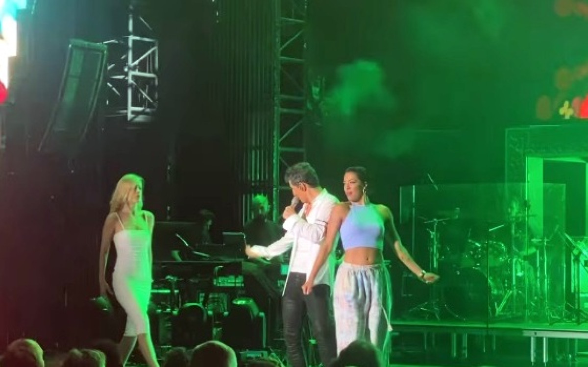 Ειδικότερα, ο τραγουδιστής κάλεσε την ηθοποιό πάνω στη σκηνή, μαζί με τη φίλη της και χορεύτρια, Δήμητρα Γεωργίου και οι δύο γυναίκες χόρεψαν με τη ψυχή τους.