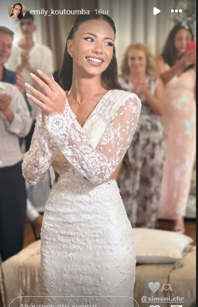 H πανέμορφη Σιμώνη Χριστοδούλου, για την πιο ξεχωριστή μέρα της ζωής της, επέλεξε να φορέσει μια ρομαντικό και σέξι νυφικό με κεντημένα λουλούδια και cut outs, μια δημιουργία της Κύπριας σχεδιάστριας, Έφης Παπαϊωάννου. Στα μαλλιά της φόρεσε ένα μακρύ πέπλο.