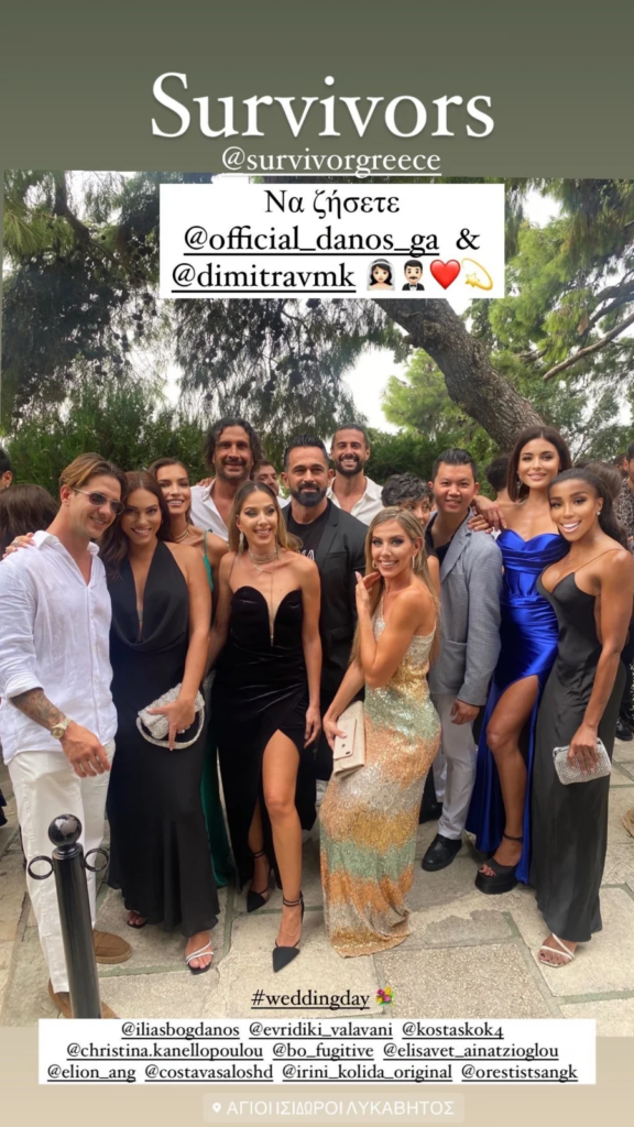 Αυτό που άφησε η Βαλαβάνη με μια φωτογραφία να εννοηθεί είναι πως ήταν η τυχερή που έπιασε την ανθοδέσμη που πέταξε η Δήμητρα Βαμβακούση. Να δούμε αν η Ευρυδίκη με τον αγαπημένο της Γρηγόρη Μόργκαν – δεν την συνόδευσε στον γάμο του Ντάνου- θα είναι η επόμενη που θα παντρευτεί ή αν θα την προλάβει ο Ηλίας Μπόγδανος!