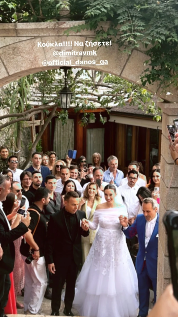 Το νυφικό που επέλεξε η Δήμητρα έκρυψε την φουσκωμένη κοιλίτσα και στα πηγαδάκια των καλεσμένων σχολιάστηκε όπως ήταν φυσικό η φημολογούμενη εγκυμοσύνη.