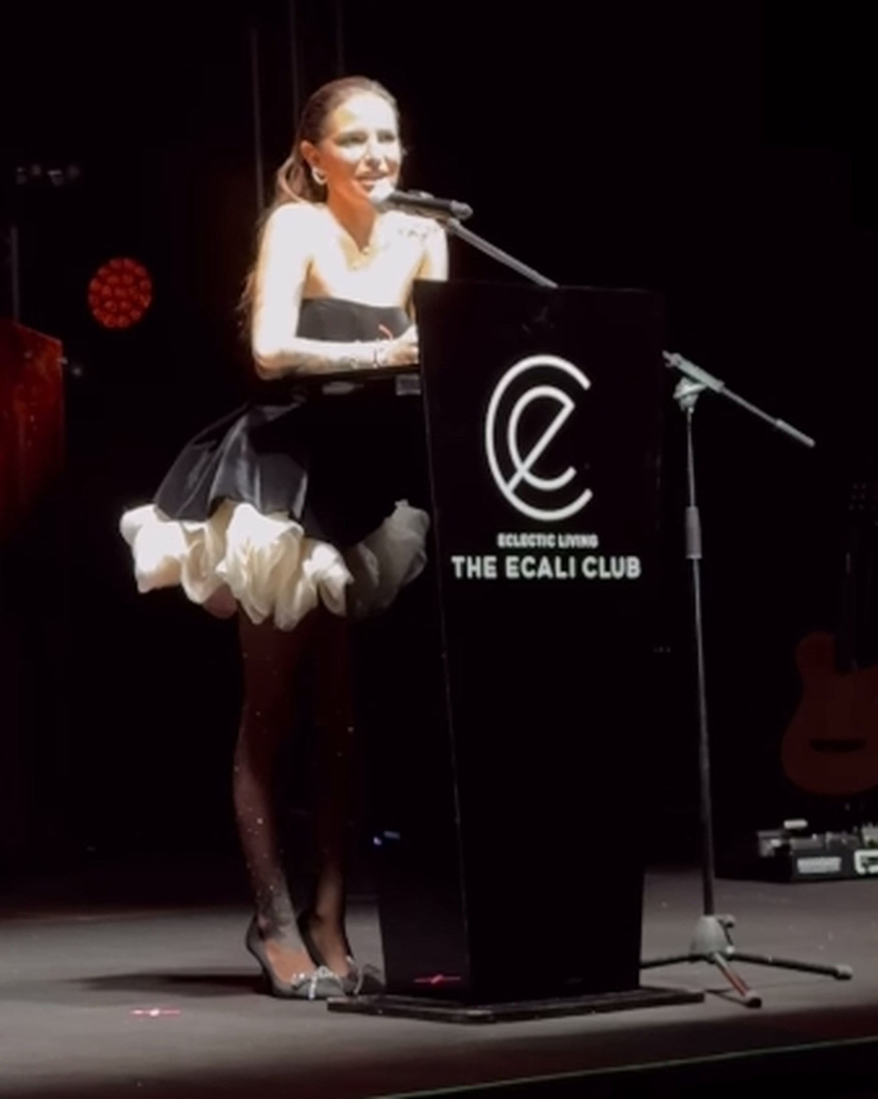 Η Εριέττα Κούρκουλου Λάτση ανέβηκε στην σκηνή για μια συγκινητική ομιλία, εκφράζοντας την υπερηφάνεια για το έργο του Save a Greek Stray. Εμφανίστηκε λαμπερή και ευδιάθετη, φορώντας ένα κομψό μαύρο φόρεμα.