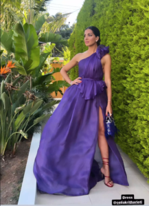 Για την ειδική αυτή περίσταση επέλεξε μία υπέροχη μωβ τουαλέτα με την υπογραφή της Σήλιας Κριθαριώτη, ενώ έλαμπε από ευτυχία στο πλευρό του συζύγου της.