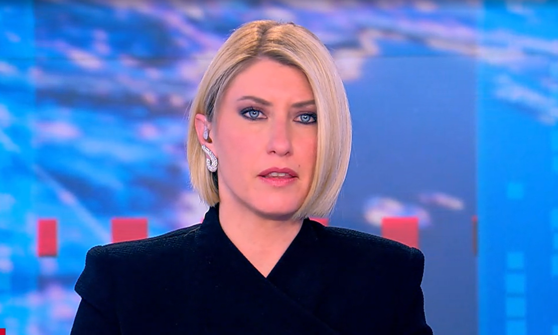 Η σύζυγος του Κώστα Μπακογιάννη και παρουσιάστρια του κεντρικού δελτίου ειδήσεων του ΣΚΑΪ επέλεξε ένα total black σετ και παλτό το οποίο συνδύασε με ιδιαίτερες γόβες με διάφανες ρίγες.
