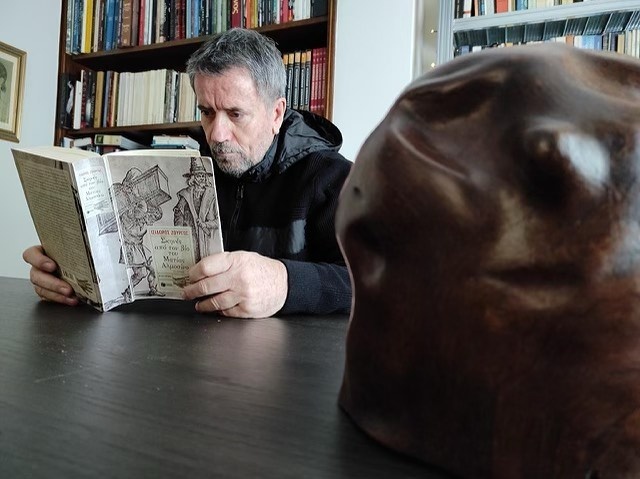 Σε κάποιο από αυτά, είδαμε ένα έπιπλο αντίκα που έχει τοποθετήσει μέσα σε αυτό τα βιβλία του αλλά και ένα πορτρέτο του.