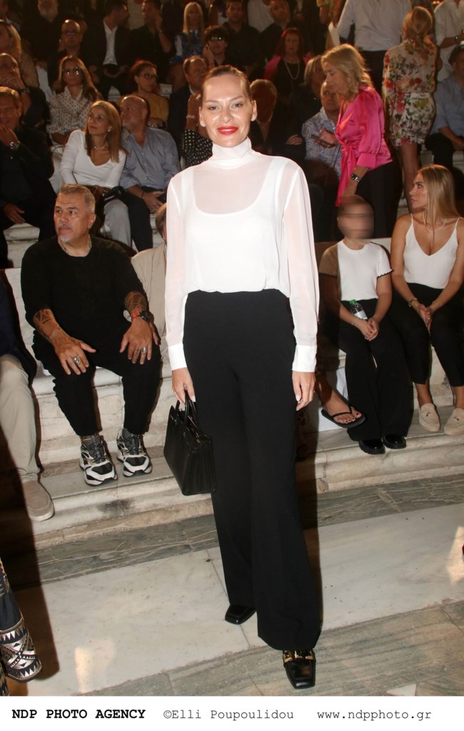 Όσο για τη μητέρα του Ρέμου και πεθερά της Μπόσνιακ, ήταν πολύ ευδιάθετη και κομψή με μπεζ ταγιέρ και πέρλες στον λαιμό, ωστόσο είχε ένα θέμα με τα παπούτσια της. Όπως βλέπουμε, η ίδια πήγε με σαγιονάρες στο Ηρώδειο, τις οποίες αφαίρεσε και πόζαρε ξυπόλητη στους φωτογράφους.