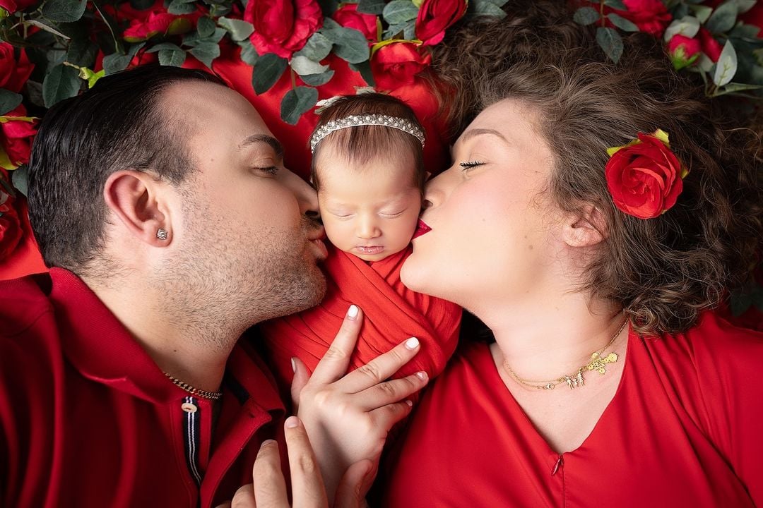 Σε μια πρόσφατη ανάρτηση στο Instagram, το ζευγάρι δημοσίευσε φωτογραφίες από μια φωτογράφιση με την κόρη τους, που έγινε σε ένα κατακόκκινο σκηνικό γεμάτο τριαντάφυλλα.