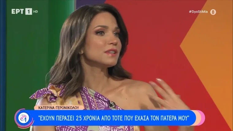 Παράλληλα, η Κατερίνα Γερονικολού αναφέρθηκε στην απώλεια του πατέρα της, αποκαλύπτοντας ότι ήταν μόλις 13 ετών όταν αυτό συνέβη. Εξέφρασε την δυσκολία που αντιμετώπισε σε μικρή ηλικία, υπογραμμίζοντας την επίδραση που είχε στην ζωή της και τον τρόπο που τη διαμόρφωσε ως άνθρωπο.