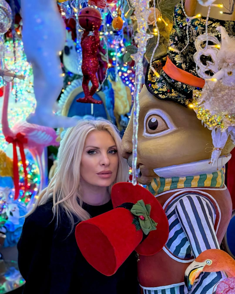 Η βασίλισσα της ελληνικής τηλεόρασης έχει τοποθετήσει το πανύψηλο χριστουγεννιάτικο δέντρο της, το οποίο είναι στολισμένο με πολύχρωμες μπάλες αλλά και άλλα στολίδια, κοντά στο παράθυρο, ενώ γύρω από το δέντρο της έχει διακοσμήσει και τον υπόλοιπο χώρο κατάλληλα.