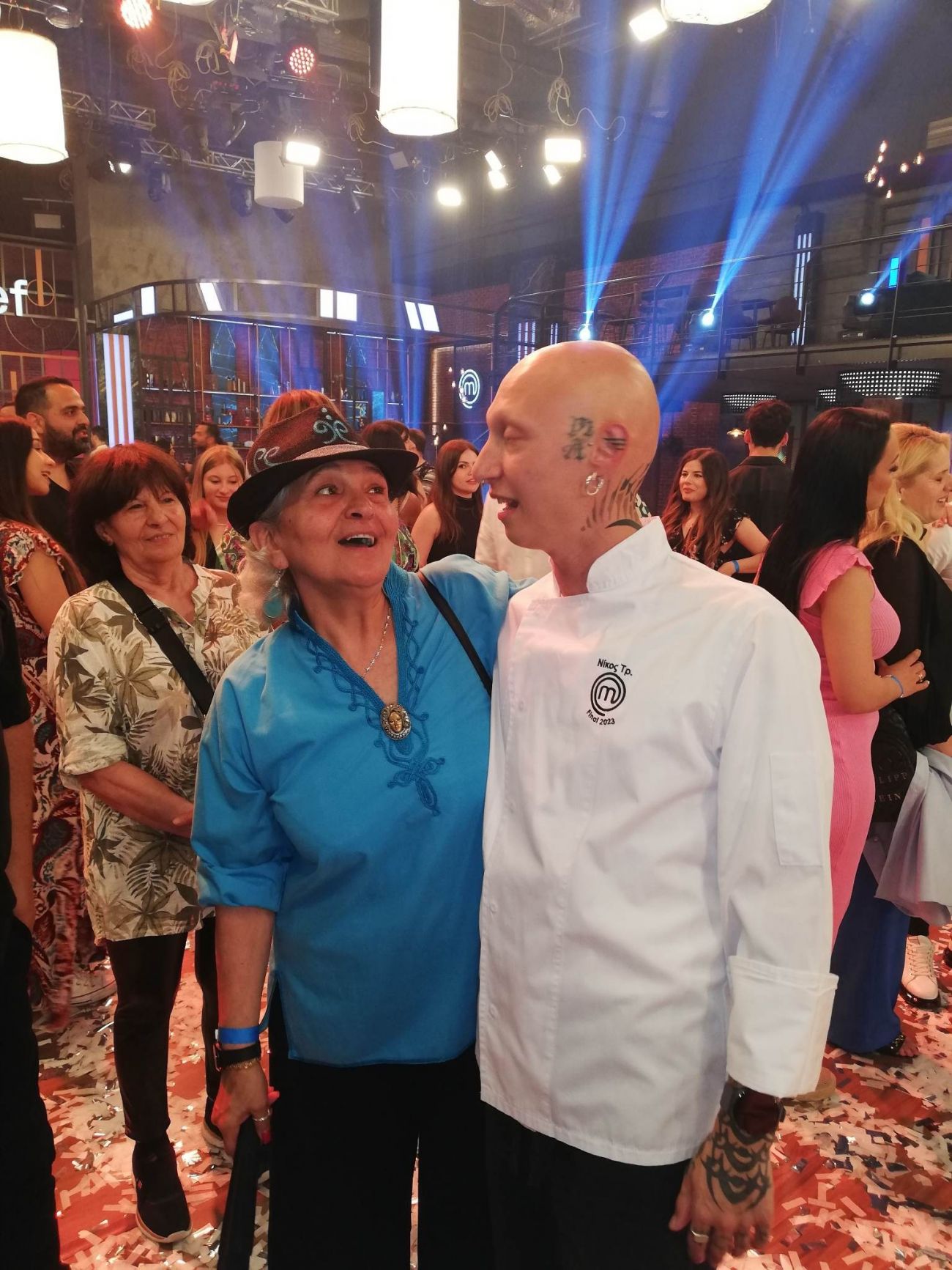 Η κυρία Μαρία, με περηφάνια, πόζαρε δίπλα στον γιο της, καθώς επίσης και δίπλα στους άλλους κριτές, Σωτήρη Κοντιζά και Πάνο Ιωαννίδη. Φυσικά, στις εικόνες που απαθανάτισε η δημοσιογράφος Κατερίνα Μπούσιου, είδαμε την εξαιρετική μητέρα να ποζάρει επίσης με παίκτες του MasterChef, όπως για παράδειγμα με τον Νίκο Τράκα, ο οποίος κατέλαβε τη δεύτερη θέση στο ριάλιτι μαγειρικής.
