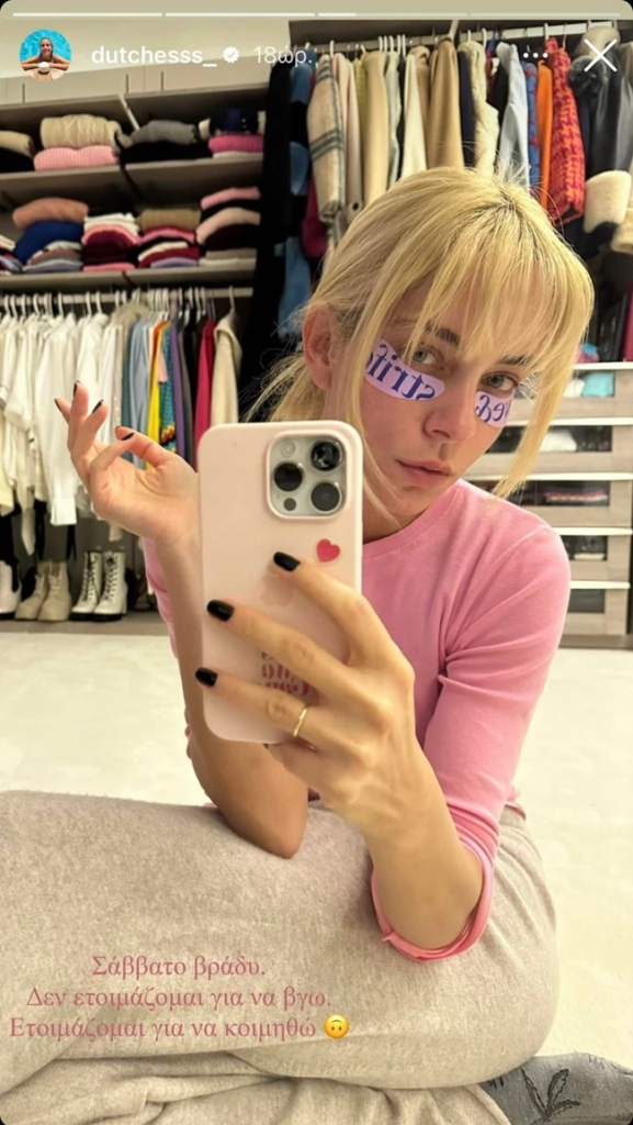 “Σάββατο βράδυ. Δεν ετοιμάζομαι για να βγω. Ετοιμάζομαι για να κοιμηθώ”, έγραψε πάνω στη φωτογραφία της.
