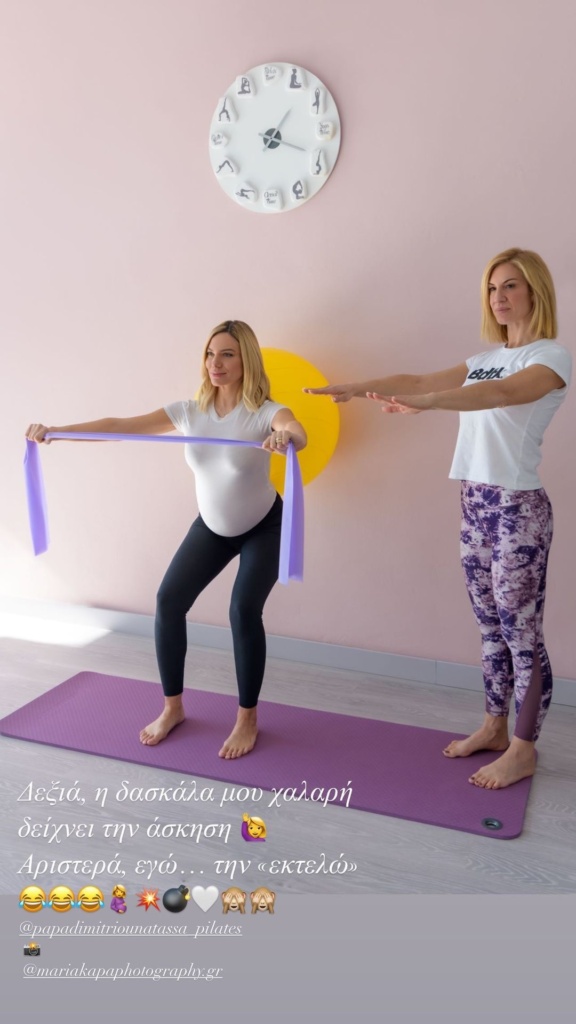 «Πάντα γυμναζόμουν στη ζωή, ειδικά την περίοδο αυτή και μιας και μιλάμε για την πρώτη μου εγκυμοσύνη – και πάντα με τη σύμφωνη γνώμη του γιατρού μου- συνεχίζω να κάνω Pilates και θεωρώ την άσκηση υγεία. Με βοηθάει και σωματικά και ψυχικά και η δασκάλα μου είναι διαρκώς από πάνω μου. Υπάρχουν και τα σχόλια εκείνα που δεν με αφορούν, θα ήθελα πάντως να μπορώ να γυμνάζομαι μέχρι και το τέλος της εγκυμοσύνης μου».