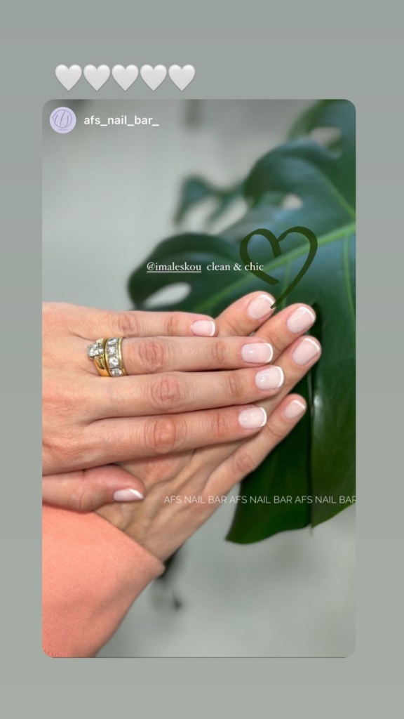 Το δαχτυλίδι φάνηκε ακόμα πιο πολύ στο πρόσφατο «νυφικό» μανικιούρ που έκανε η παρουσιάστρια.