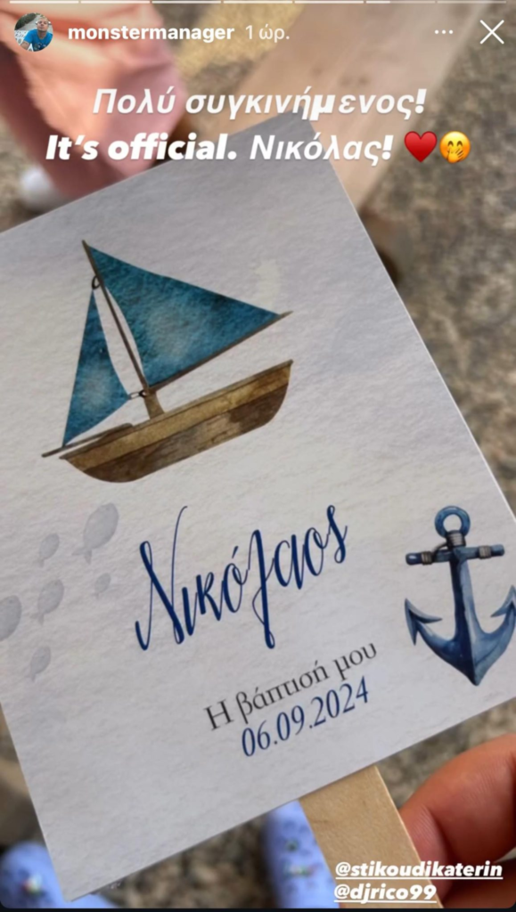 Το ζευγάρι επέλεξε να κρατήσει και αυτή τη βάπτιση, όπως και του μεγαλύτερου γιου τους μακριά από τα φώτα της δημοσιότητας. Ωστόσο ένα στόρι που ανέβασε ο Dj Stephan στον λογαριασμό του στο Instagram πρόδωσε το ευτυχές γεγονός.