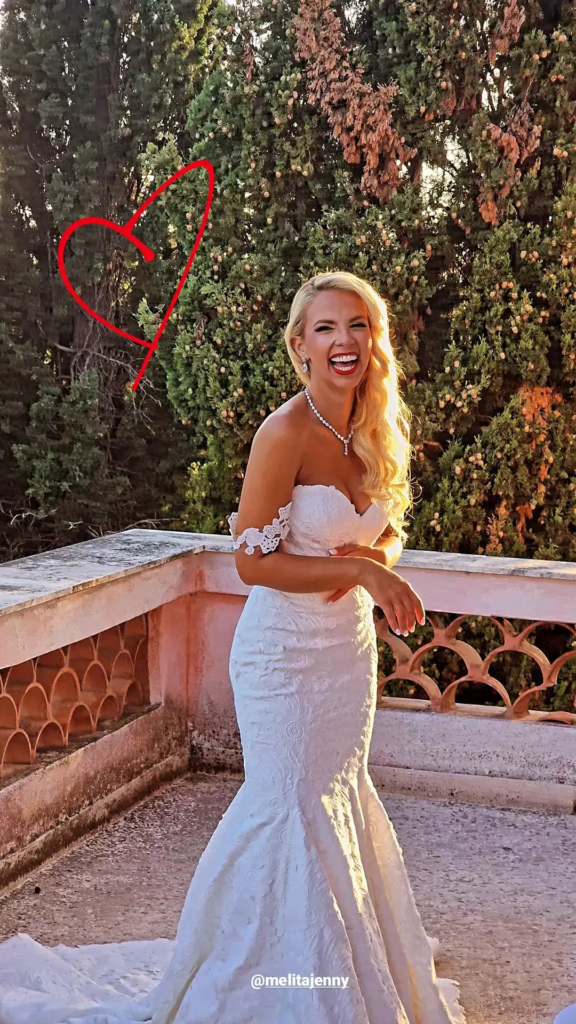 Παρόλα αυτά, πολλοί φίλοι του ζευγαριού δημοσίευσαν τις πρώτες φωτογραφίες από τον γάμο μέσα από τους προσωπικούς τους λογαριασμούς στο Instagram, δίνοντάς μας μία γεύση από το νυφικό που φόρεσε η παρουσιάστρια και από το ξέφρενο party που ακολούθησε. Το νυφικό της Τζένης, ήταν όλο με λεπτομέρεια δαντέλα! Ήταν στράπλες με δαντελένιες λεπτομέρειες που έδεναν λίγο πιο κάτω από τους ώμους, ενώ ο τρόπος με τον οποίο αγκάλιαζε το σώμα της ήταν σε στυλ γοργονέ με μακριά ουρά και ανοιχτή πλάτη.