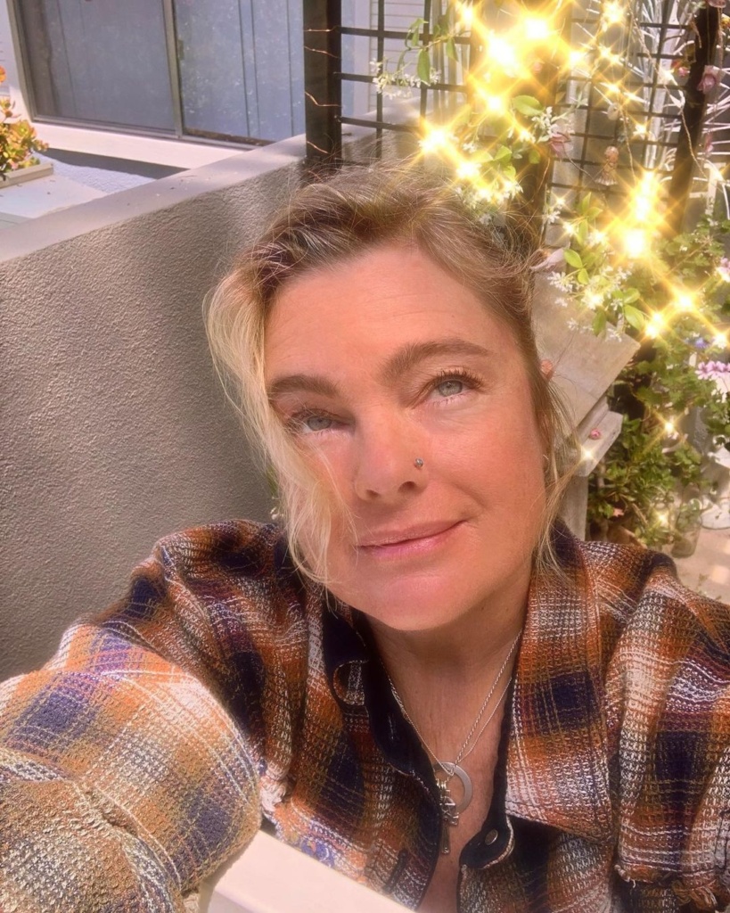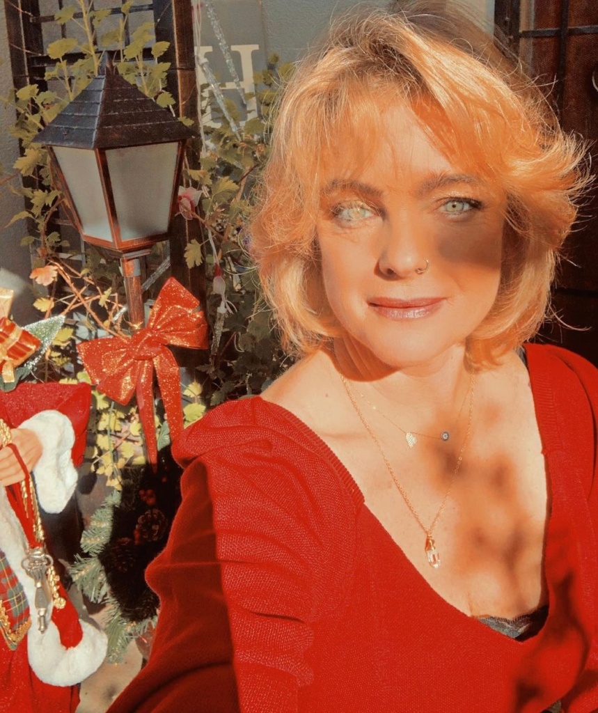 Η ηθοποιός έχει τελείως διαφορετικό στυλ, πιο ροκ, με κρίκο στην μύτη και πολλά τατουάζ, ενώ συνοδεύει τη φωτογραφία με τη λεζάντα “Εύχομαι σε όλους μια πολύ χαρούμενη “Κυριακή για Αυτοφροντίδα” τι θα κάνετε για εσάς; Εγώ θα περάσω χρόνο με την οικογένεια- Τόσο καλό για την ψυχή”.