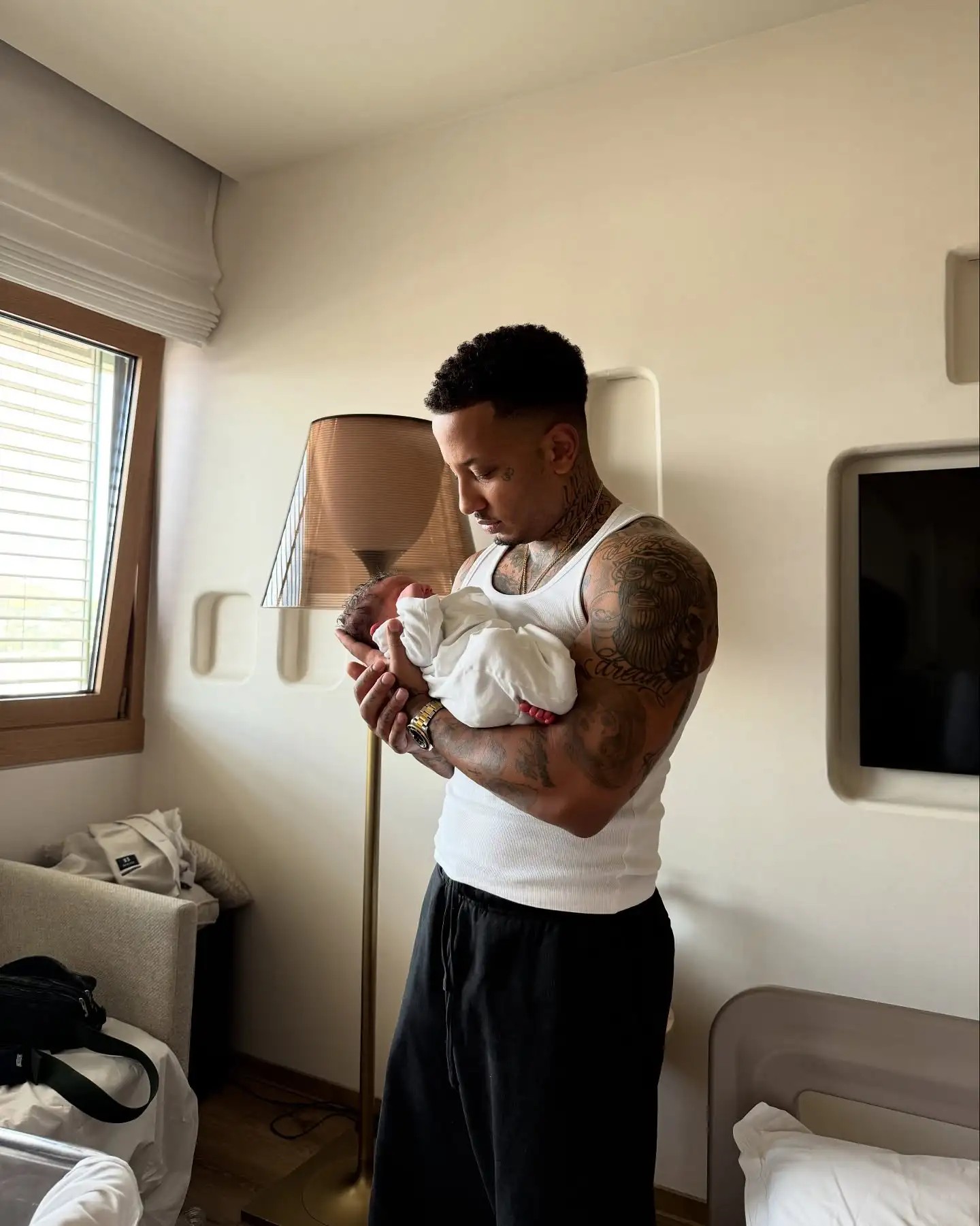 Στις εικόνες βλέπουμε τη νέα μανούλα να κρατάει στην αγκαλιά της τον νεογέννητο γιο της, ενώ στο ίδιο στιγμιότυπο βλέπουμε τον Light, ο οποίος δεν έλειψε λεπτό από το πλευρό της αγαπημένης του.