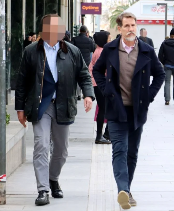 Ο Παύλος Ντε Γκρες φαίνεται να διασχίζει τη Βουκουρεστίου, casual ντυμένος όσο απολαμβάνει την έξοδό του συνοδεία του σωματοφυλακά του. Θυμίζουμε ότι η Αθήνα αποτελεί πλέον βάση για τον ίδιο, για τη Marie Chantal και για τα πέντε τους παιδιά καθώς έχουν αποκτήσει ένα διαμέρισμα στην Ηρώδου Αττικού.